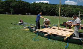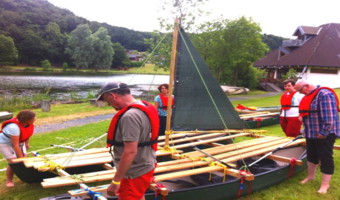 Jetzt werden die Segel gehisst-aus Kanadierrümpfen, hochwertigem Holzmaterial, Seilen, Tampen und Gewebeplanen bauen die Teilnehmer segelfähige Katamarane, um danach auf der Wasserfläche des Riedener Waldsees die Seetüchtigkeit der Konstruktionen in einer spannenden Regatta unter Beweis zu stellen. Hierbei geht es Team gegen Team, Boot gegen Boot, auf die mit Bojen und engen Durchfahrten gespickte Regattastrecke. Natürlich steht die Eifeler Seehütte mit kulinarischen Spezialitäten oder die Pizzaria am Waldsee mit leckeren Pizza- und Pastagerichten für eine Stärkung der „Bootcrews“ während des Events bereit....